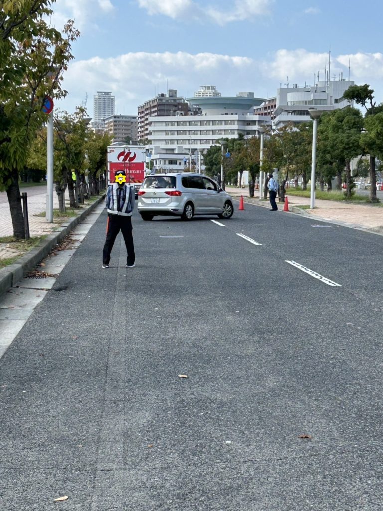 イベント会場周辺は多くの人が行き交っている中、通行止めエリアで、ドライバーの皆さまに丁寧に迂回をお願いしました。分かりやすい案内を心がけることで、混乱を最小限に抑えるよう努めました。